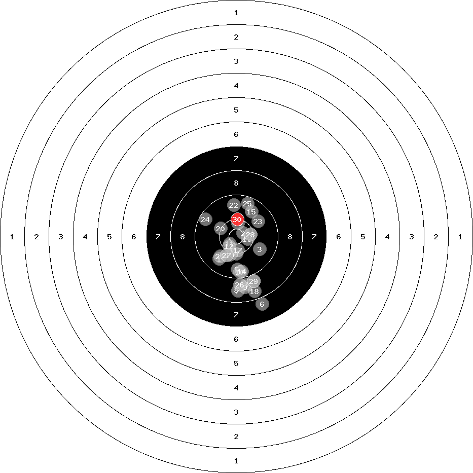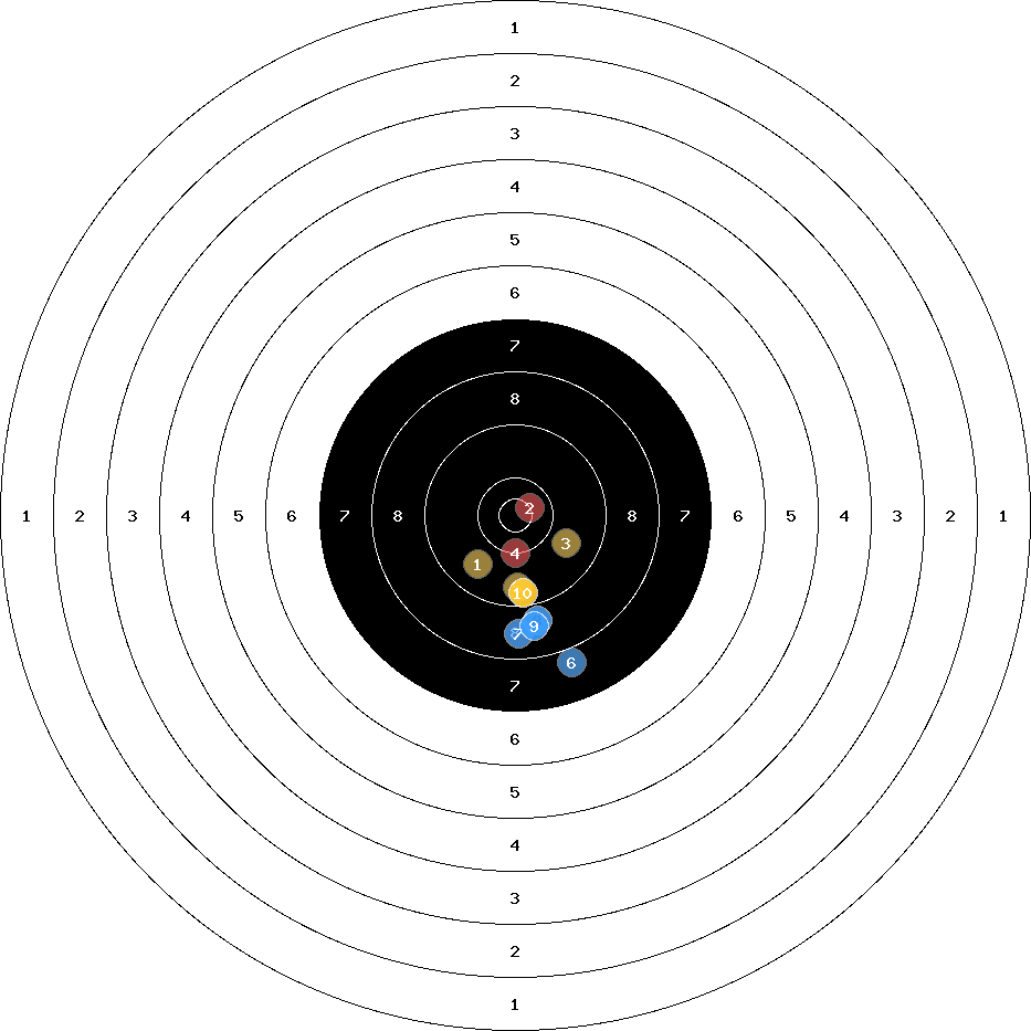 hit position: 0.36 mm rechts, 0.49 mm tief