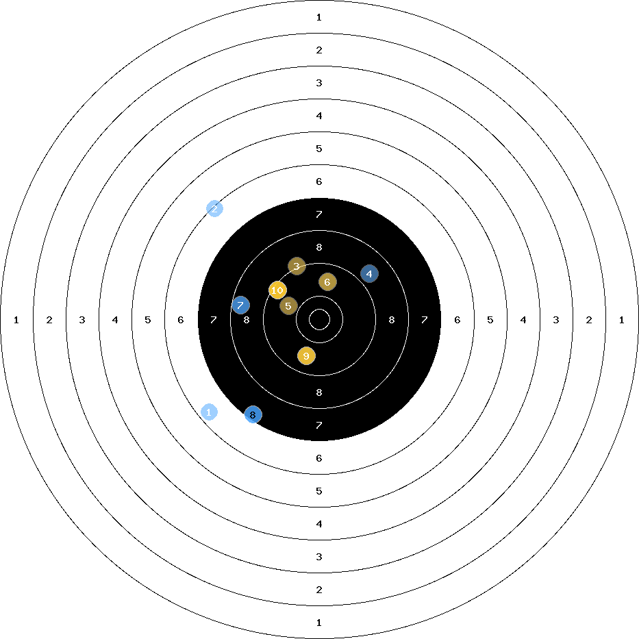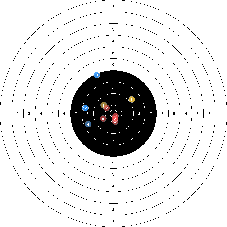 hit position: 5.06 mm left, 0.93 mm low
