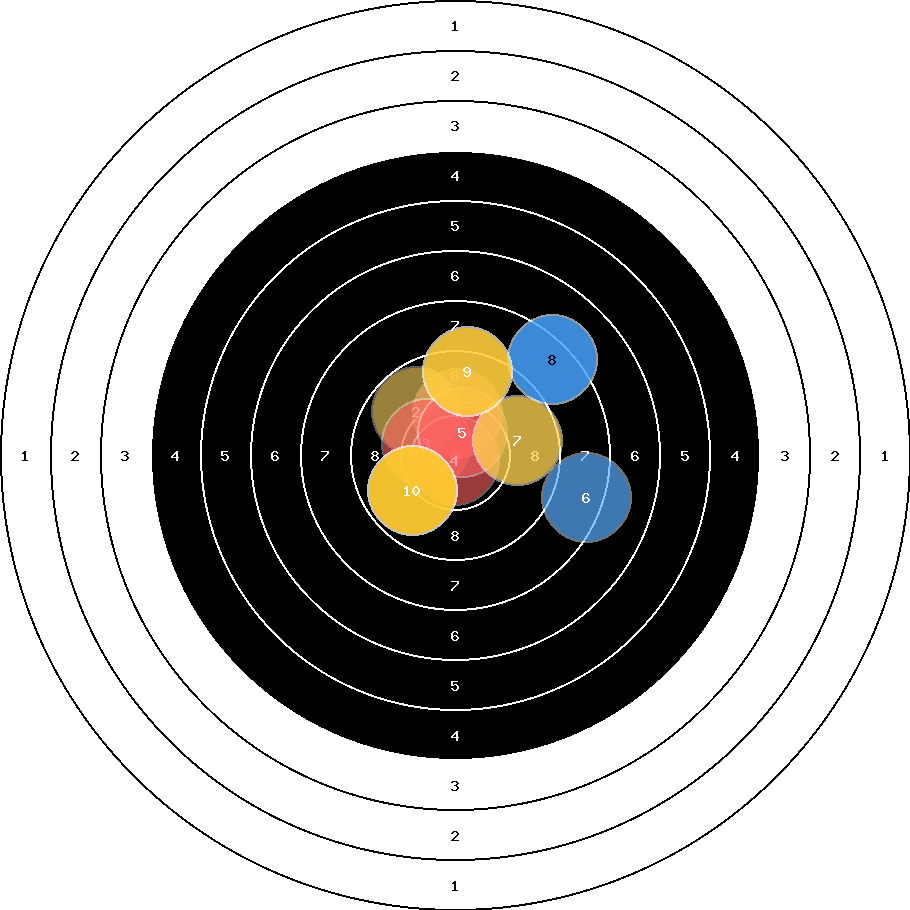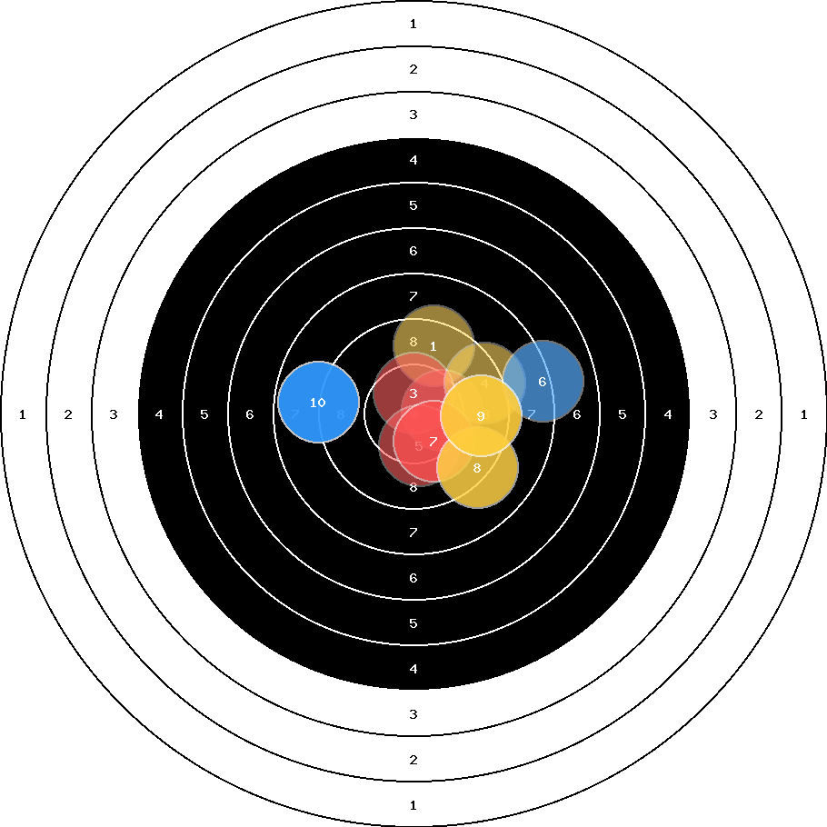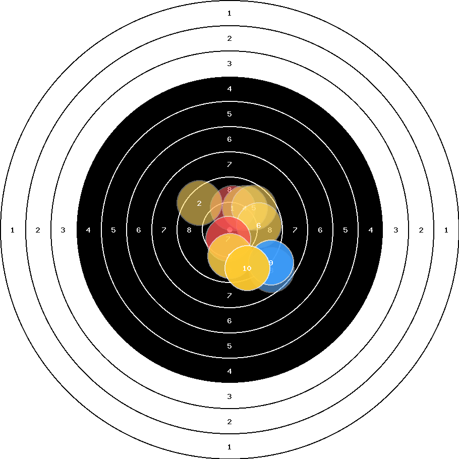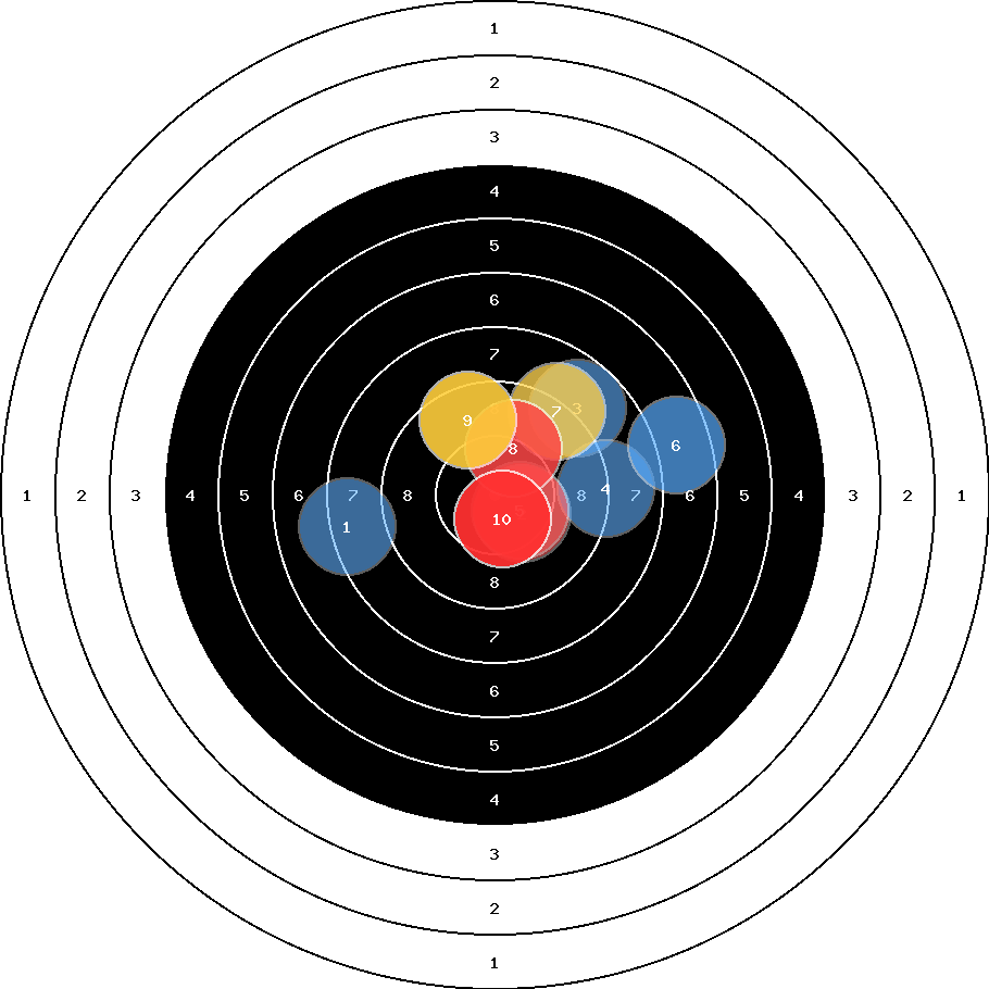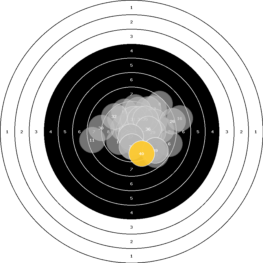 hit position: 1.4 mm right, 0.5 mm low