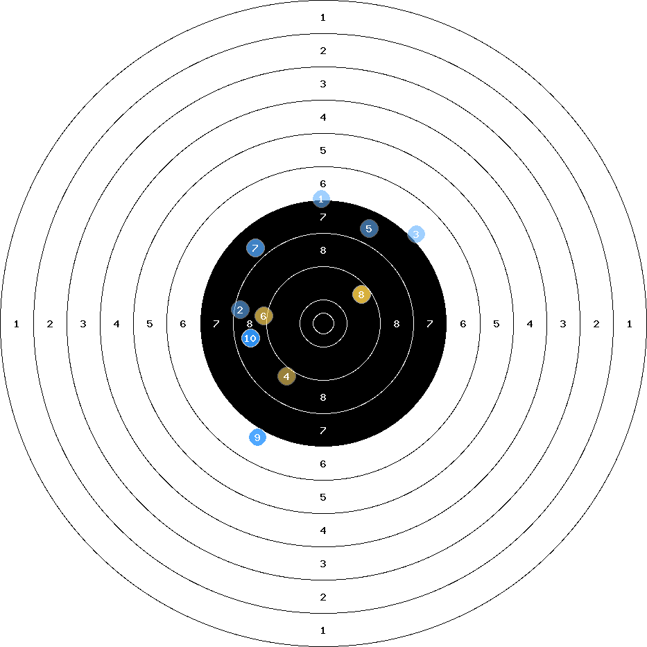 hit position: 0.68 mm left, 8.02 mm low