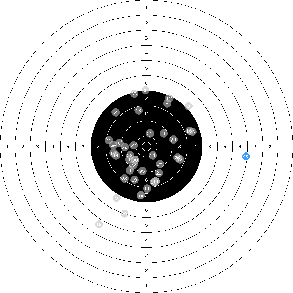 hit position: 0.39 mm left, 3.19 mm low