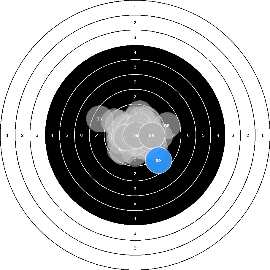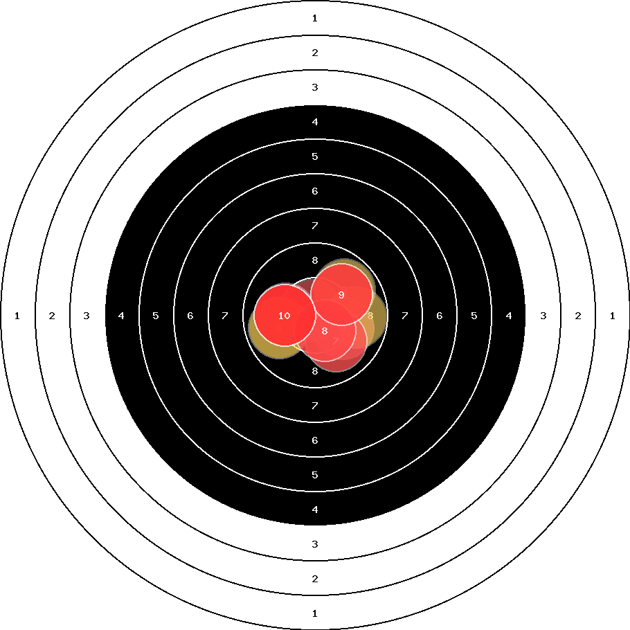 hit position: 0.81 mm right, 0.75 mm low