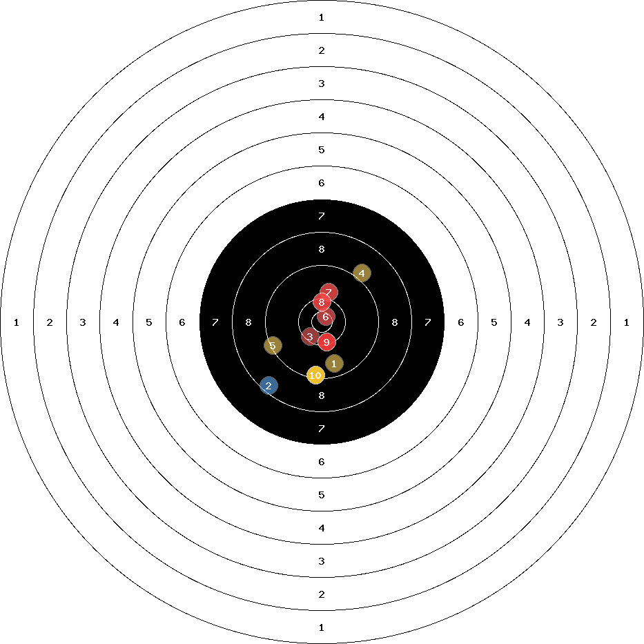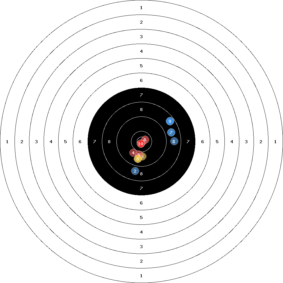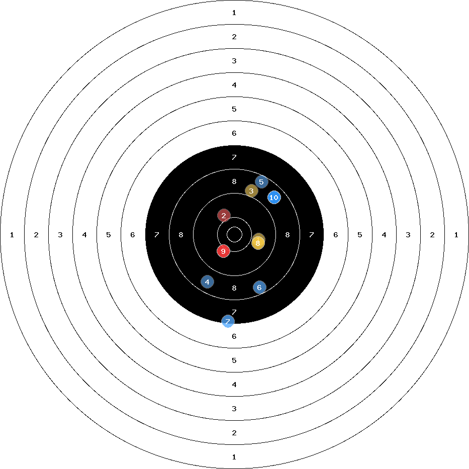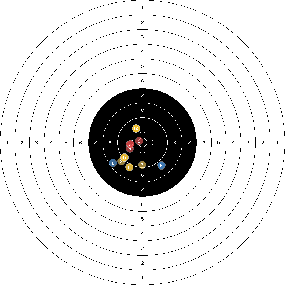 hit position: 3.38 mm right, 2.13 mm low
