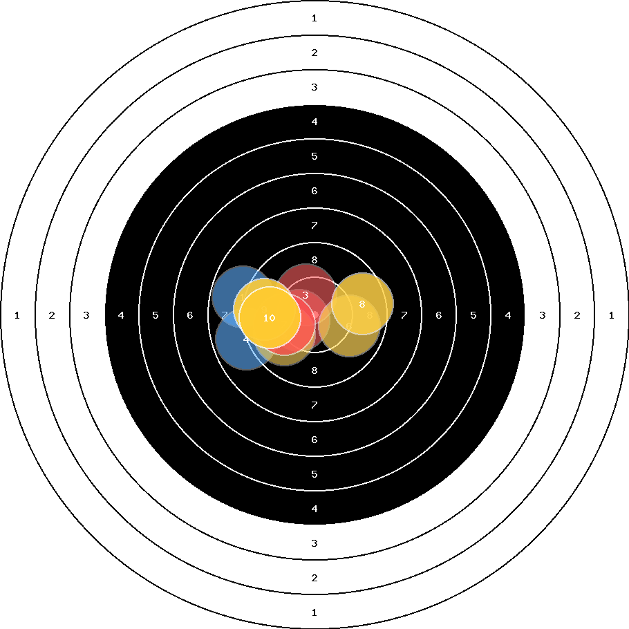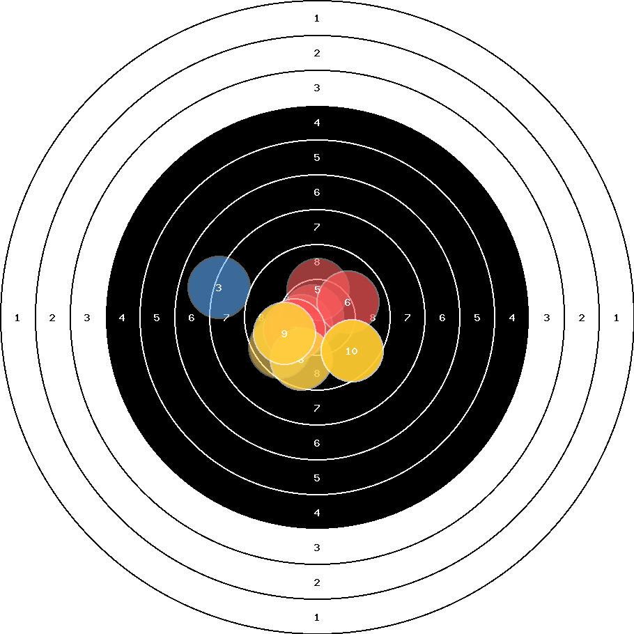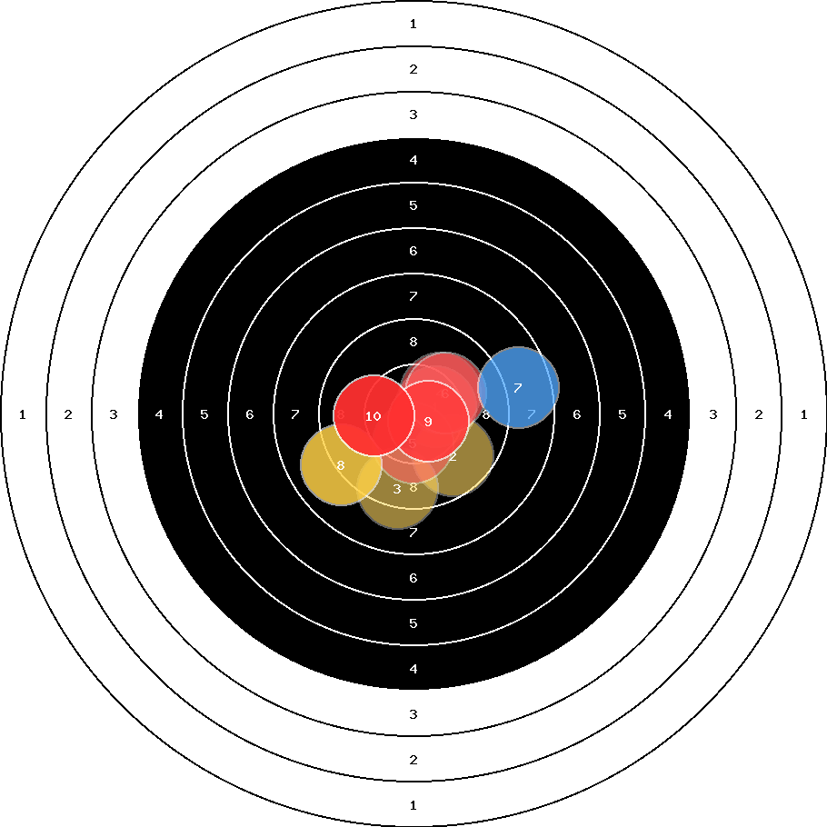 hit position: 0.61 mm right, 0.72 mm low