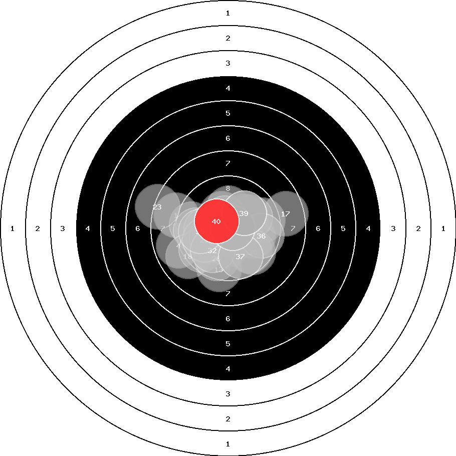 hit position: 0.57 mm left, 0.39 mm low