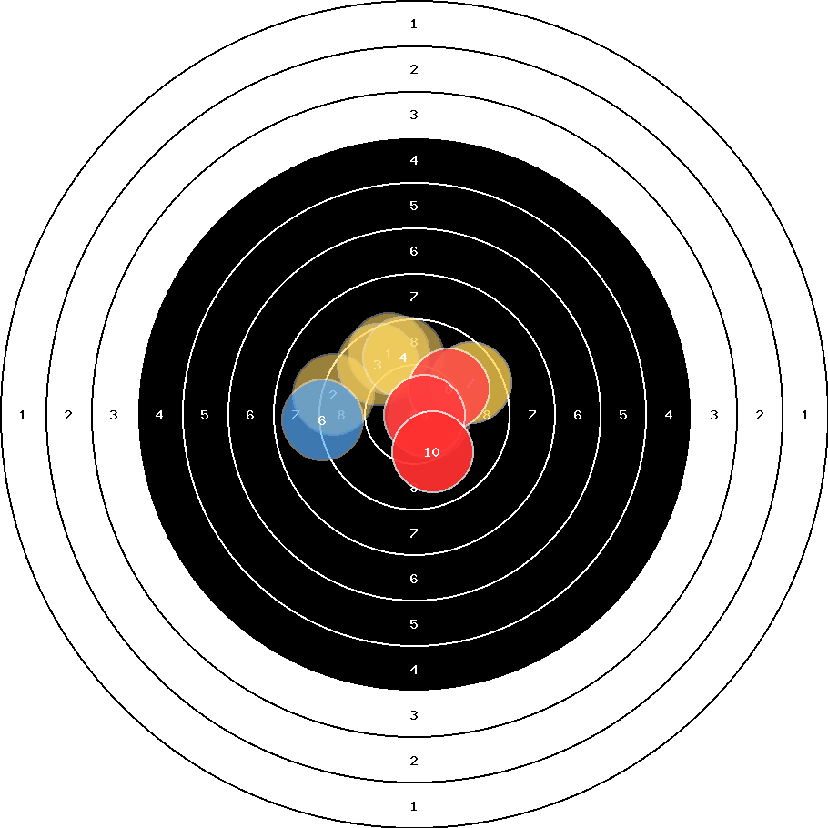 hit position: 0.24 mm right, 1.22 mm low