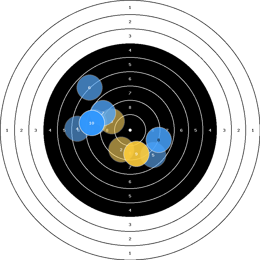 hit position: 1.69 mm left, 1.2 mm high