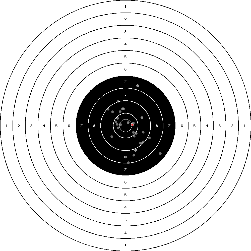 hit position: 14.31 mm right, 40.77 mm low