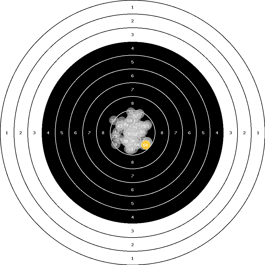 hit position: 3.98 mm left, 0.15 mm low